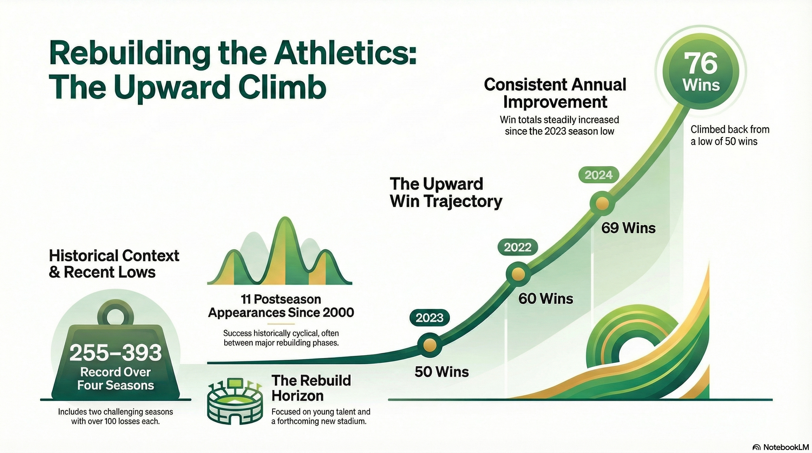Might the current wave of young talent and the upcoming new ballpark support a more sustainable winner? Probably not, but they do seem primed to contend relatively soon after improving from 60 and 50 wins in 2022 and 2023 to 69 in 2024, and 76 a year ago.
